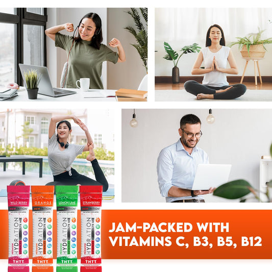 Hydration Packets Electrolyte Drink Powder Packets | Dehydration Relief 48 Servings, Lemon Lime, Orange, Strawberry, Wild Berry